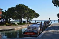 Odpoczynek nad brzegiem morza, w tle ośnieżone szczyty Dolomitów