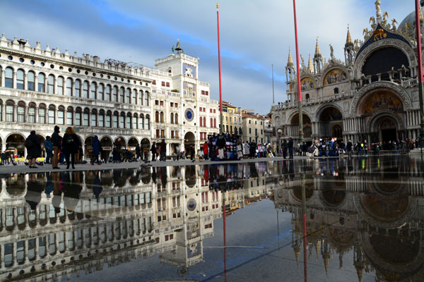 Plac św. Marka (bazylika z prawej) czasami jest pod wodą