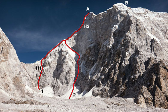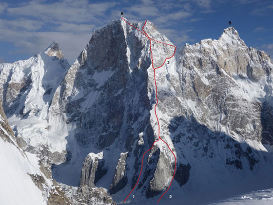 Po prawej stronie północnej grani zespół brytyjsko-słoweński napotkał głównie żleby lodowe i strome pola firnowe. Trawers w prawo zaczęli na wysokości około 6400 m. Następnie, mimo złej pogody, kontynuowali wspinaczkę z przełęczy na 6700 m do szczytu, który osiągnęli w piątym dniu akcji. Trzy dni później, zjeżdżając i schodząc mniej więcej tą samą drogą, dotarli do bazy. Tym samym zespół dokonał dopiero drugiego wejścia na wybitny szczyt w paśmie Panmah Muztagh, zdobywając go po raz pierwszy od północnej strony.