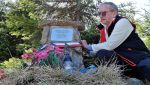 Jan Kobiałko dekorujący obelisk upamiętniający katastrofę proporczykami Polski, Rep. Czeskiej i Francji (źródło: Jan Kobiałko)