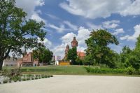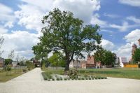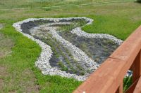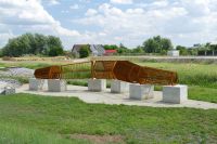 Dowiedziałem się jednak, że projekt od początku zakładał, że w okresach bezdeszczowych rośliny te będą usychać. Gdy deszcz wgłębienia wypełni wodą, wtedy będą ożywać i wyglądać bardziej okazale. Na terenie ogrodów znajduje się dziwna na pierwszy rzut oka konstrukcja. Ta artystyczne przedstawienie ogona smoka, co nawiązuje do jego wizerunku znajdującego się w herbie Żmigrodu.