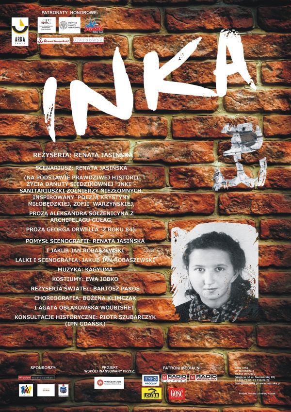 Teatr Arka postanowił otworzyć swoje drzwi, wpuścić tę niezwykłą i dumną historię na swoją scenę i pokazać go jak najszerszej publiczności. Spektakl teatralny „Inka” to pierwsza tego typu w Polsce artystyczna odpowiedź na wołanie z bezimiennych dołów, gdzie bez honoru zakopywano, jak mówi wielu - ostatnich rycerzy Najjaśniejszej Rzeczpospolitej. Jednym z takich rycerzy była Danuta Siedzikówna, ps. „Inka”. Dziś ikona niezłomności i niewinności.