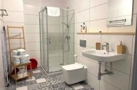 - nowoczesną łazienkę z prysznicem, ręcznikami i suszarką do włosów,