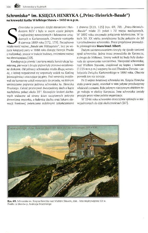 Jacek Suchodolski: "Architektura schronisk górskich w Sudetach". Oficyna Wydawnicza Politechniki Wrocławskiej, Wrocław 2014, wydanie II, poprawione. Okładka miękka, format 21 x 29,5 cm, stron 278, liczne czarno-białe i kolorowe ilustracje