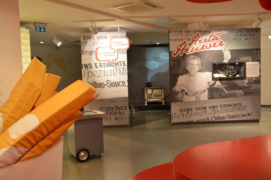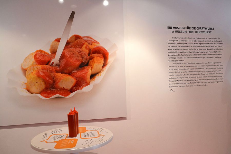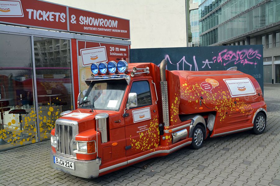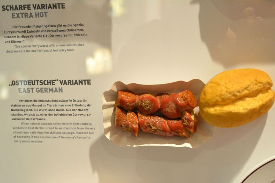 Sporo ciekawych miejsc jest w Berlinie… Pomału zaczyna jednak przypominać nam o sobie żołądek, więc dla podsycenia apetytu zapraszam do Muzeum Currywursta, by obejrzeć ekspozycję poświęconą najsłynniejszej berlińskiej kiełbasce. Znajduje się zaledwie 200 m od odwiedzonej przed chwilą panoramy. Muzeum otwarte zostało w 2009 roku, 60 lat po wynalezieniu przez Hertę Heuwer currywursta. Oglądając multimedialną ekspozycję, można się z niej dowiedzieć wszystkiego o tym popularnym fast-foodzie, obejrzeć film o produkcji, poczuć się jak sprzedawca w budce, poznać rodzaje currywurstów i sposoby ich podawania, czy wreszcie poczuć zapach przypraw używanych przy podawaniu kiełbaski. Na koniec można skosztować currywursta, ale nie polecamy jedzenia większej ilości (mała porcyjka jest w cenie biletu) i to nie dlatego, że miałoby być niesmaczne (bo jest wyśmienite!), ale dlatego, że na większy posiłek udamy się w zupełnie inne, kultowe miejsce…