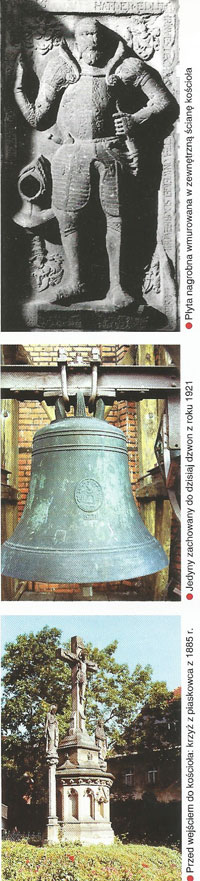 Niezwykle cennym skarbem tej świątyni jest XVI-wieczna płyta nagrobna. Podczas rozbiórki starego kościoła zachowano kilka takich płyt, ale do dzisiaj przetrwała tylko ta jedna. Umieszczono ją na zewnątrz w murze nowego kościoła. Jest to nagrobek szlachcica, prawdopodobnie Joachima von Netza z Ostroszowic (Weigelsdorf), pierwszego z tej rodziny właściciela Bielawy, zmarłego 25 października 1599 r., a pochowanego dopiero 12 listopada. Na nagrobku widnieje postać rycerza z hełmem i mieczem, a w czterech kątach są tarcze herbowe. Napis na obrzeżach płyty, w wielu miejscach nieczytelny, głosi: