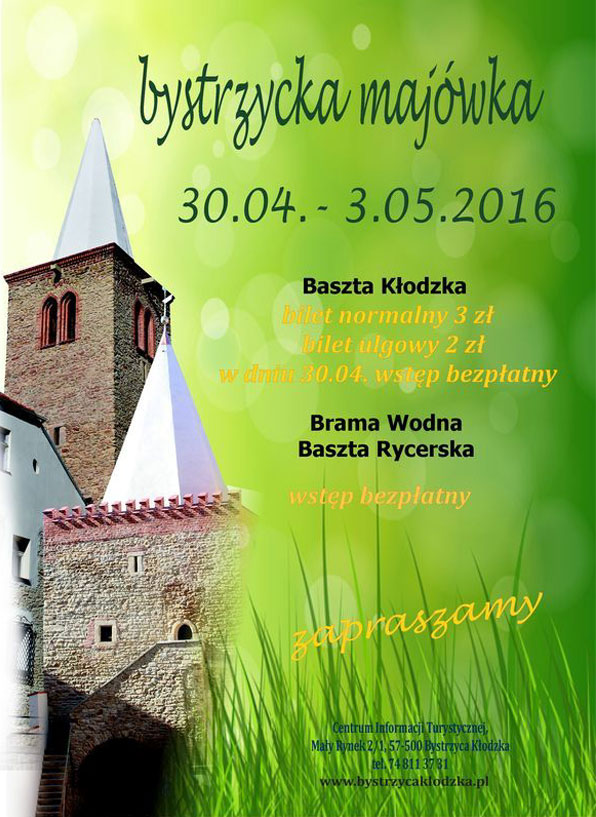 W majowy weekend Bystrzyca Kłodzka udostępni turystom i mieszkańcom, w ramach święta patrona – św. Floriana, średniowieczne baszty miasta. Baszty są elementami XIV-wiecznych fortyfikacji miejskich i stanowią wyjątkową atrakcję Bystrzycy Kłodzkiej. Można z nich nie tylko podziwiać piękne widoki na miasto, ale także zobaczyć w Bramie Wodnej historyczną makietę ukazującą dawną Bystrzycę Kłodzką, a w Baszcie Rycerskiej dzwony pochodzące z początku XIX wieku. Baszta Rycerska od 1843 roku pełniła rolę dzwonnicy znajdującego się obok kościoła ewangelickiego (obecnie budynek Muzeum Filumenistycznego).