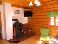 Naszym gościom oferujemy dwa samodzielne apartamenty, każdy ma swoje własne wejście i wyposażenie. Oba apartamenty składają się z pokoju dziennego, dwóch sypialni oraz łazienki z prysznicem i WC. W każdej sypialni mogą spać 2-4 osoby. Maksymalna pojemność jednego apartamentu to osiem osób, całego domu - szesnaście. W pokoju dziennym jest kominek, telewizor z odbiornikiem satelitarnym oraz kącik kuchenny z naczyniami, mikrofalówką, kuchenką, czajnikiem bezprzewodowym i lodówką z zamrażarką. Palenie w kominku poprzez wymienniki ciepła powoduje ogrzewanie całego apartamentu. W letnich miesiącach można posiedzieć na zewnątrz pod wiatą, przy grillu. Parking znajduje się tuż przy chałupie, dostępny jest przez cały rok.