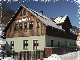 Zapraszamy do Hornego Maršova, do górskiej chaty „Maršovka”, położonej w pięknej okolicy, na skraju wsi. Czeka na Was świeżo zrekonstruowana chata, której początki sięgają 1880 roku. Naszym celem jest, byście czuli się u nas jak u siebie w domu. Dzięki swemu dogodnemu położeniu, „Maršovka” oferuje możliwość korzystania z kilku ośrodków narciarskich (m.in. w Pecu pod Sněžką, Velkiej i Malej Úpie, Jánskich Lázniach, Žacléřu), do których jest zalewie kilka kilometrów. Bezpośrednio nad chatą znajduje się wyciąg Třešňovka, a kolejne dwa znajdują się całkiem niedaleko. Okolica jest również świetnym miejscem dla miłośników biegania na nartach. Ale Karkonosze to nie tylko śnieg i sporty zimowe, zapraszamy więc także w lecie – podczas pieszych i rowerowych wycieczek po okolicy poznacie nieskażoną, karkonoską przyrodę lub po prostu porządnie odpoczniecie przed domem.