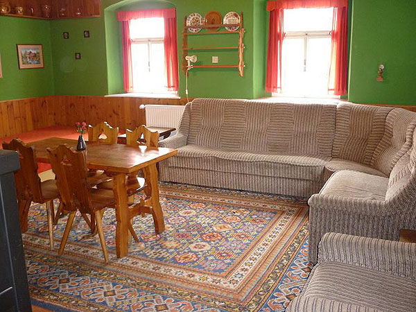 Kuchnia jest w pełni wyposażona, między innymi w kuchenkę gazową, lodówkę, mikrofalówkę, czajnik bezprzewodowy, ekspress do kawy. W świetlicy znajduje się kolorowy telewizor, radio oraz zestaw gier towarzyskich. Możliwość wypożyczenia pościeli (50 Kč za sztukę).