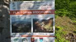 Nic nie stoi na przeszkodzie aby połączyć te dwa miejsca, platformę zostawić sobie na koniec jako wisienkę na torcie przed powrotem do domu. Zwłaszcza, że platforma ta jest dostępna praktycznie dla każdego. Do celu zakosami prowadzi szeroka szutrowa droga. Jest pod górkę, jednak nie bardzo stromo i cały odcinek w jedną stronę to zaledwie około 2 kilometry więc każdy turysta da sobie spokojnie radę. Na miejscu czeka na nas ławeczka i tablica z krótkim opisem tego miejsca oraz rozpościerającego się z niego widoku.