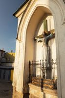 Wchodzę w obłuszczone i wilgotne uliczki Wambierzyc. Słońce świeci już zbyt nisko, by mogło osuszyć odrapywane przez lata ściany. Na jednej z nich rozłożyła swe ramiona postać młodej kobiety. Miała jej urosnąć broda, wymodlona po to by odstraszyć pogańskiego zalotnika. Kawaler porzucił pomysł ożenku jak niepyszny, a rozwścieczony ojciec kazał ją ukrzyżować. Kościół przez pięć wieków uznawał Wilgefortis za świętą, a jej kult zawędrował z Portugali aż tu. Dziś się do niej nie przyznaje.