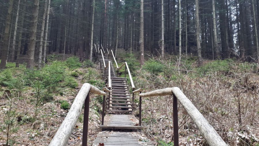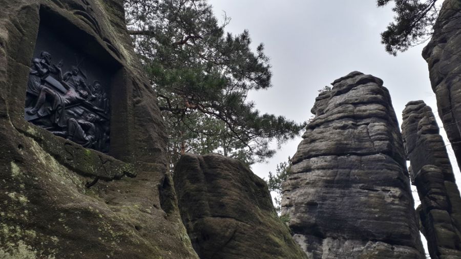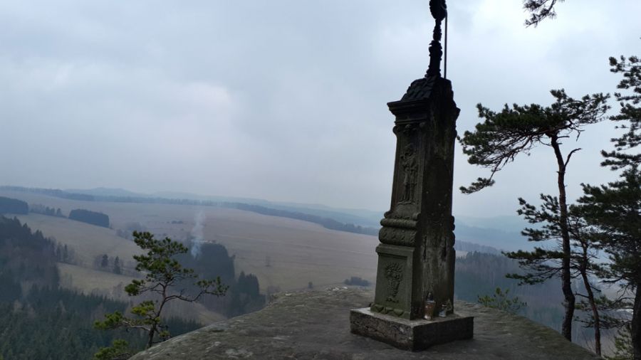 Wycieczka w zdecydowanie mniej znane miejsce, naprzeciwko bardzo popularnego skalnego miasta w Adršpachu. Po obejrzeniu tych jakże obleganych skał, zachęcam do startu w zupełnie przeciwnym kierunku. Auto zostawiamy na dokładnie tym samym parkingu głównym, jednak kierujemy się łąką do lasu znajdującego się po drugiej stronie. Ruszając w tym kierunku i obchodząc las w lewo, żółtym szlakiem kierujemy się na tzw. Drogę Krzyżową, która zaprowadzi nas na sam szczyt, na którym znajduje się pozłacany krzyż i świetna panorama na całe wspomniane Adršpašskie skały.