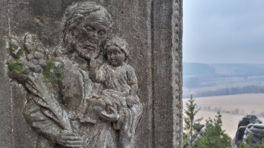 Początek trasy zaczyna się charakterystycznymi drewnianymi schodami, które przez znaczną część trasy będą prowadzić nas do celu. To one ułatwiają podejście na bardziej niedostępnych i niewygodnych fragmentach, oraz możemy z nich podziwiać „wtopione” w skały obrazy symbolizujące całą naszą podróż. Im bliżej szczytu tym ciekawiej. Warto zboczyć na tę trasę, bo to dosłownie rzut kamieniem, a atrakcja jest warta choćby jednorazowego spaceru. Dla kogo? Właściwie dla każdego. Odległość od parkingu to około 2 km, w trudniejszych miejscach zamontowane wygodne schody i poręcze. Uwaga, na samym szczycie brak jakichkolwiek zabezpieczeń więc jeśli wybieracie się z dziećmi to trzeba wziąć to pod uwagę i nie spuszczać ich z oczu.