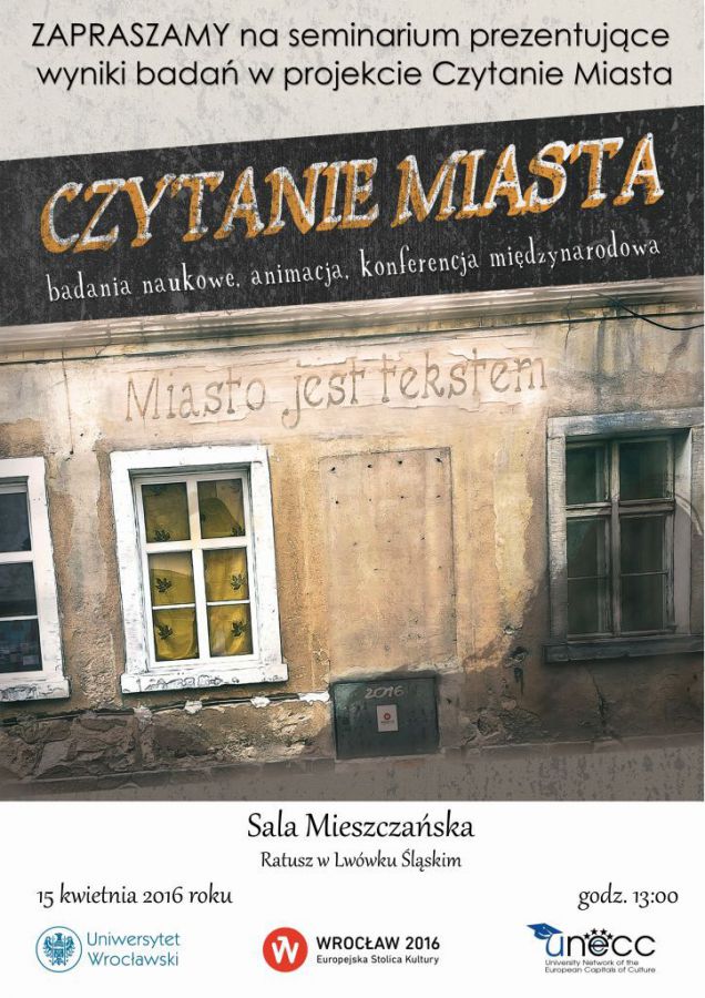 15 kwietnia warto udać się do Lwówka Śląskiego. O godzinie 13:00 w Sali Mieszczańskiej lwóweckiego ratusza odbędzie się seminarium warsztatowe – podsumowanie projektu "Czytanie miasta", przeprowadzonego we Lwówku Śląskim w ramach Europejskiej Stolicy Kultury Wrocław 2016.