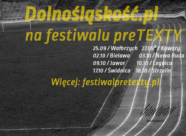 W dniach 15-17 października do Świdnicy po kilkuletniej przerwie zawita dolnośląski festiwal literacko-artystyczny preTEXTY. W programie tego dwudniowego wydarzenia, oprócz spotkań autorskich, koncertów i warsztatów, odbędzie się równie otwarte spotkanie poświęcone odkrywaniu lokalnego dziedzictwa kulturowego. Pretekstem do tych wydarzeń jest nowo powstała platforma Dolnośląskość.pl.