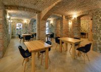 Na początek trzeba było wzmocnić fundamenty domu i wymienić wszystkie stropy. Gdy budynek stał już pewnie umocowany w podłożu, przystąpiono do stworzenia sali w piwnicy, która zrobiła na nas największe wrażenie. Patrząc na obszerne wnętrze z równym ceglanym sklepieniem, filarami i wyłożonymi kamieniami ścianami, trudno wręcz uwierzyć, że w momencie przejęcia domu przez państwa Rudych, piwniczka była jedynie niewielkim pomieszczeniem, do którego schodziło się po drabinie, uniósłszy drewnianą klapę w podłodze.