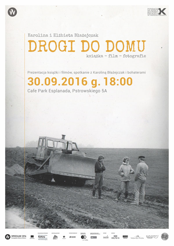Efektem jest zbiór reportaży literackich zilustrowanych archiwalnymi zdjęciami. Całości dopełniają krótkie filmy dokumentujące wspólne wyprawy artystki i bohaterki, matki i córki, kobiety urodzonej w wolnej Polsce i jej matki, dorastającej w czasach PRL-u, a zarazem pracującej w zdominowanym przez mężczyzn zawodzie przy fizycznej budowie dróg. Co wynikło z tych spotkań? Czemu one służyły? Jak wyglądały drogi do domu wszystkich bohaterów reportażu? Odpowiedzi na te i wiele innych pytań szukać będziemy podczas spotkania w Cafe Park Esplanada. Po spotkaniu będzie można także odnieść książkę „Drogi do domu” do domu. Za darmo. Spotkanie odbędzie się w piątek, 30 września o godz. 18:00 w Cafe Park Esplanada (Szklarska Poręba, ul. Pstrowskiego 5a).