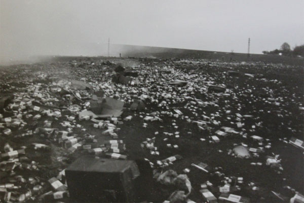 Pole koło Dubenca pokryło się kartonami i paczkami papierosów. źródło: Národní archiv