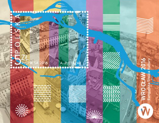 Projektantką znaczka jest Aleksandra Pietrzak, która tak mówi o swoim dziele: Wizyta we Wrocławiu umocniła mnie w przekonaniu, że to miasto kreatywne i inspirujące do działania. Miejscem rozpoznawalnym dla wszystkich jest Rynek, dlatego postanowiłam umieścić na bloczku jego widok z lotu ptaka, z perspektywy kogoś, kto dopiero tu „przyleciał” i chce zostać na dłużej. Europejska Stolica Kultury uwodzi także malowniczym opływem Odry, dzięki której zapotrzebowanie na mosty w tym mieście jest wyjątkowe – na znaczku graficznie zobrazowałam płynną linię miasta. Transparentnie naniesione kolory odpowiadają ośmiu dziedzinom kultury programu ESK, które mają podkreślić barwność miasta i jego pozytywne oddziaływanie.