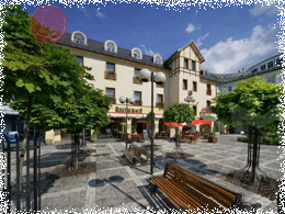 Oferujemy 36 pokoi 2-osobowych lub 3-osobowych oraz trzy apartamenty dla rodzin. W każdym pokoju znajduje się pełny węzeł sanitarny z własną łazienką i WC, prysznicem lub wanną, suszarką do włosów. Oprócz tego TV-SAT, telefon, w niektórych pokojach możliwe jest połączenie internetowe. W cenie pobytu zawarte jest śniadanie w formie bufetu. Posiadamy również własne wellness, na które składają się: sauna, whirpool, masaże, okłady borowinowe, kosmetyczny laser, pneuven, indoor cycling, aerobic, tenis stołowy. W budynku usytuowany jest także bank, kawiarnia, inne usługi (fryzjer, kosmetyka, solarium, manikiur), dalej pasaż handlowy. W pobliżu hotelu jest do dyspozycji bar muzyczny z ofertą 99 koktajli oraz bilardem.