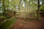 Kamienne słupki płotu, to najliczniejsze artefakty, które pozostały. Mają one wysokość 2 m, i ważą ok. 300 kg. Osadzone są w gruncie na 1/3 długości. Na dwóch bokach mają otwory do osadzania drewnianych belek konstrukcji płotu. Słupki bram są większe, mierzyły 3,2 m długości i ważą ok. 700-800 kg. I podobnie były osadzane na 1/3 długości w gruncie. Większość słupków wykonana była z miejscowego kamienia, lub zostały przywiezione z niedaleko położonych kamieniołomów. Ciekawymi elementami zagród leśnych były, tzw. jelenie skoki. Tu wykorzystywano miejscowe, odpowiednio ukształtowane głazy. Od strony zewnętrznej zagrody głaz musiał umożliwić łagodne podejście zwierza, a od wnętrza stanowić jednolitą ścianę płotu. W takich miejscach zwierzyna była wabiona paszą, aby skłonić ją do owego skoku do zagrody.