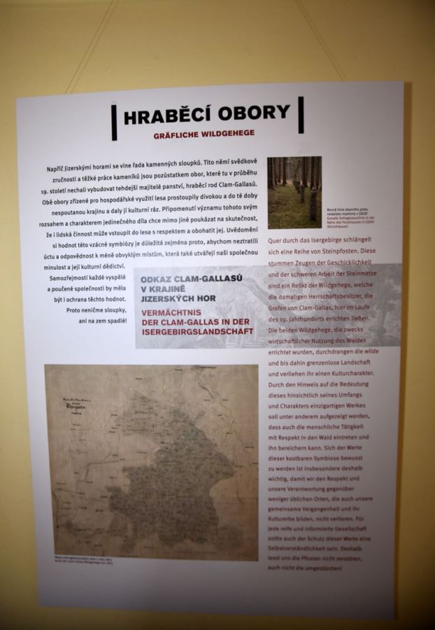 "Hraběcí obory" czyli "Hrabiowskie zagrody", tak można przetłumaczyć tytuł nowej wystawy, zorganizowanej przez Národní památkový ústav (NPU) Czeskiej Republiki. Ta niewielka wystawa fotografii oraz kilku posterów dotyczy jedynego do dnia dzisiejszego zachowanego na terenie Sudetów "zjawiska"*, jakim są leśne zagrody hodowlane na terenie Gór Izerskich. Możemy ją oglądać do 15 grudnia 2019, na terenie dawnego klasztoru franciszkanów, dziś "Międzynarodowego centrum duchowej odnowy" w Hejnicach. Jednocześnie wystawa stanowi jedną z akcji prowadzonych w roku bieżącym w ramch projektu "Gallasové/Clam-Gallasové. Noblesa severnich Čech", a organizowanym przez NPU. Celem projektu jest popularyzacja wiedzy o rodzie szlacheckim zamieszkującym, na przestrzeni czterystu lat, tereny północnych Czech.