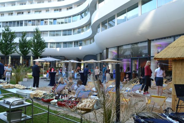 Sceną jazzOVO jest zielone patio w znanym z niezwykłej architektury budynku OVO Wrocław. Niedawno powstała tu plaża restauracyjna OVO Beach Club z owocami morza w menu, a kawiarnie i restauracje przyciągają letnią ofertą – od sezonowych tapas i koktajli (OVO Bar & Restaurant), steków (Campo), dań kuchni czeskiej (Drevny Kocur), czy azjatyckich pierożków (Dim Sum Garden) po piwo rzemieślnicze z browaru Pinta, czy wrocławską kawę z Etno Cafe. – Klimat patio w OVO jest wyjątkowy. To prawdziwa oaza w sercu miasta. Z jednej strony można rozsiąść się na leżaku lub kocu i wsłuchać w muzykę, a z drugiej dzięki otoczeniu barów i restauracji połączyć koncert z dobrą kolacją – zachęca Shuckie Ovadiah, CEO OVO Wrocław.