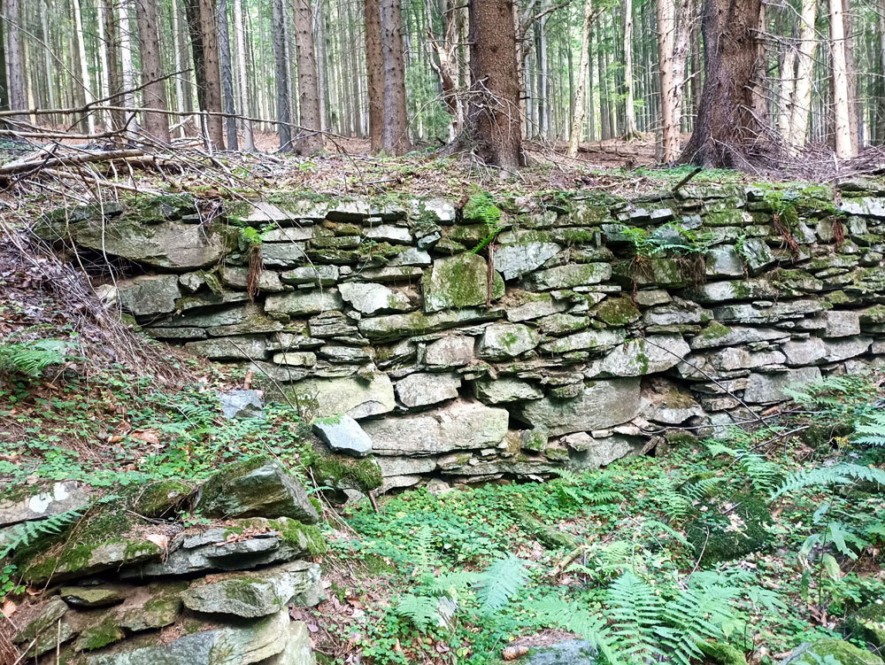 Z dawnej osady zachował się jeden obiekt – leśniczówka ze stodołą. Zachowała się też droga prowadząca przez wieś, kamienny mostek, marmurowy krzyż, murowana kapliczka oraz pozostałości piwnic niektórych domów.