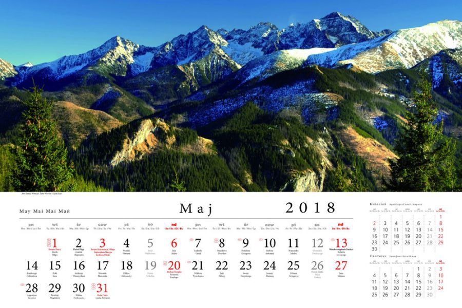Kalendarz Tatry w panoramie 2018 w Sudeckiej Księgarni Wysyłkowej