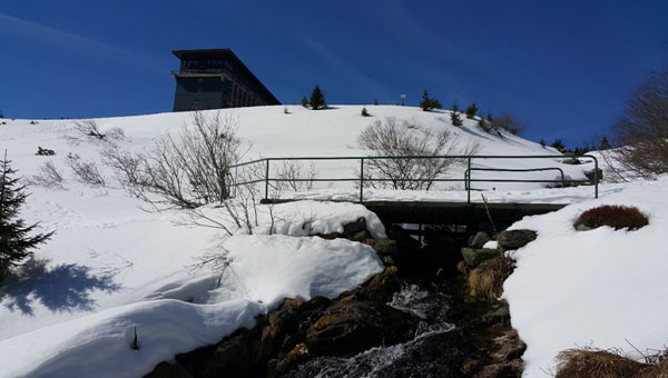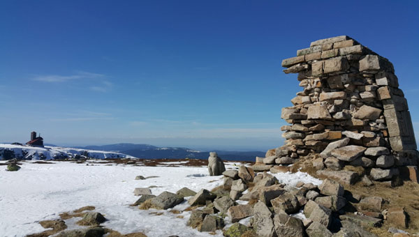 Wiodący dalej szlak wokół Wielkiego Szyszaka jest zamknięty dla ruchu pieszego co oczywiście nie przeszkadza ludziom tam chodzić. Dziwne to, chodzi mi oczywiście o ich bezpieczeństwo, bo przecież jeśli chodzi o jakieś zniszczenia to wszystko jest przysypane warstwą śniegu więc nic się nie stanie jak przejdzie tędy kilkadziesiąt osób. Trzeba jednak mieć trochę wyobraźni i pomyśleć zanim wejdzie się na nawisy śnieżne. Na szczycie stoi pomnik cesarza Wilhelma i zapewne to jest powodem, że wszyscy chcą tu podejść. Niestety sama budowla chyli się ku upadkowi. Naprawdę niewiele już potrzeba czasu by pozostała z niej kupka gruzu. Ciekawostką jest tutaj fakt, że na mapie Wielki Szyszak ma wysokość 1509 metrów n. p. m. a pomiar Endomondo wykazuje 1555 metrów.