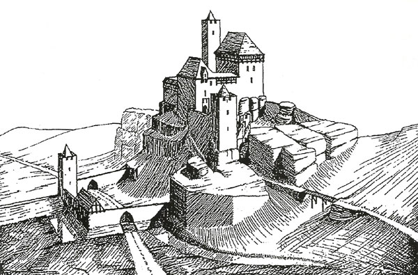 Romantyczna rekonstrukcja wyglądu zamku w widoku od północy z 1836 r.