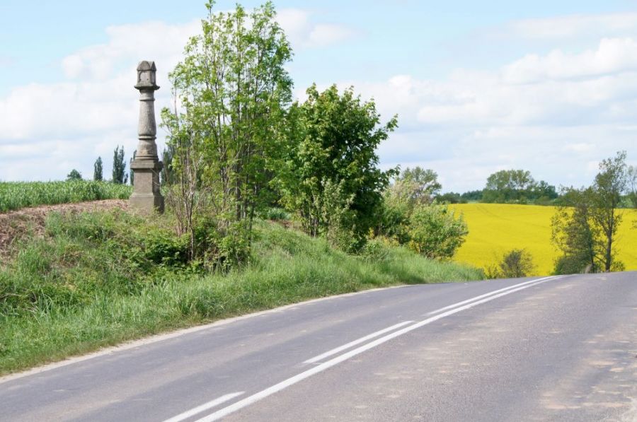 Nieco przysadzista skromna kamienna kapliczka stała sobie ponad 300 lat (postawiono ją w 1699 roku) przy drodze z Golejowa do Wojciechowa (gm. Lubomierz, pow. Lwówek Śl.). Brakowało obrazu we wnęce (pewnie blacha skorodowała), a mały metalowy krzyż na szczycie był powyginany (złomiarz był „w rękach słaby”?). W kwietniu 2018 roku byłem zdaje się ostatnim, który ją fotografował w całości, bo już w maju na portalu WratislaviaeAmici pojawiło się zdjęcie utrąconego cokołu i trzonu leżącego obok w krzakach. Teraz (początek sierpnia 2018 r.) kapliczka zniknęła – wg relacji okolicznych mieszkańców podobno ktoś widział, jak ktoś te kamienie wywoził. Pytanie kto i dokąd? Co ciekawe (może to żart?) – na drzewie obok przybito gustowną tabliczkę „Obiekt monitorowany”. Tabliczka też już jest ułamana.