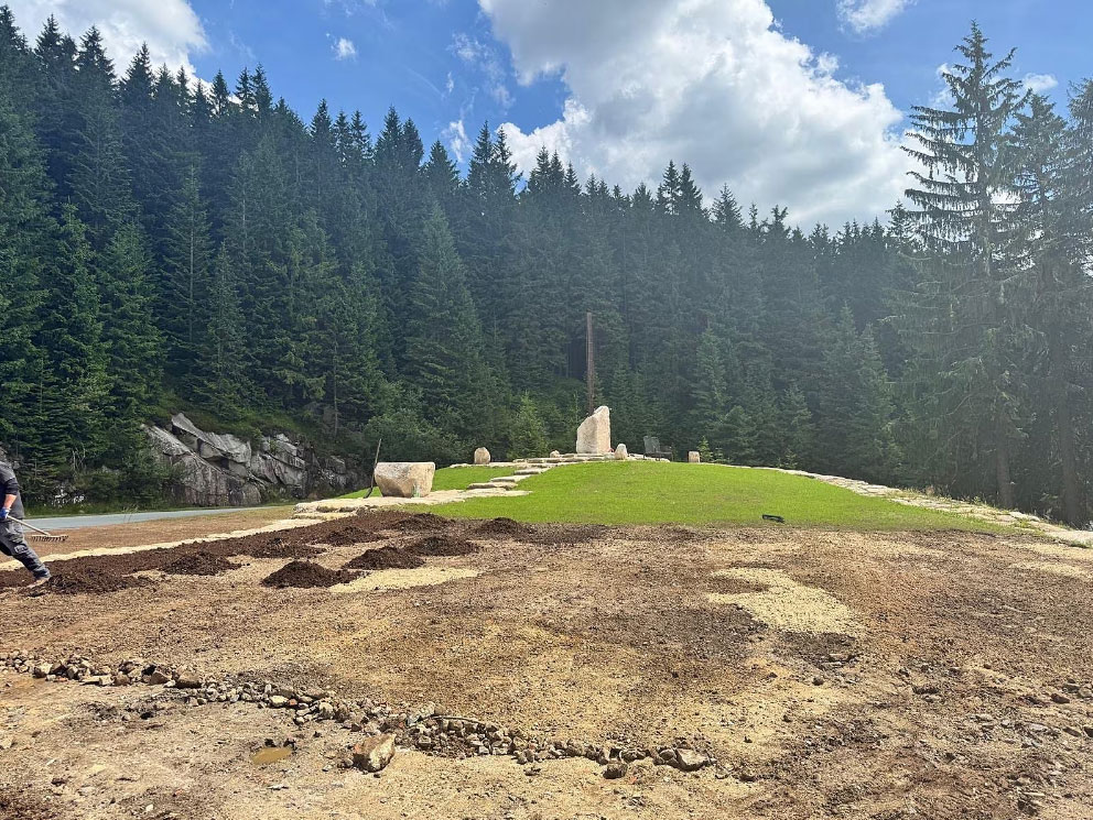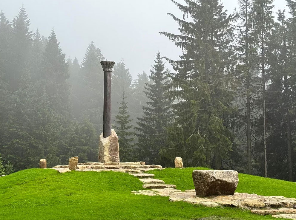 Według słów Jiřego Tomáška z Erlebachowej boudy, nad stworzeniem miejsca i grupy rzeźb, pracowało w sumie ponad sto osób. – Kolumna ze stali nierdzewnej wbita jest w granitowy głaz niczym gwóźdź w krzyż Chrystusa i wrasta w Drzewo Życia – tłumaczy ideę artystycznej instalacji Tomášek. I dodaje, że granitowy głaz znaleziony został kilka metrów od chaty podczas ubiegłorocznej powodzi – trzy dni trwało zanim udało się go wydobyć z ziemi.