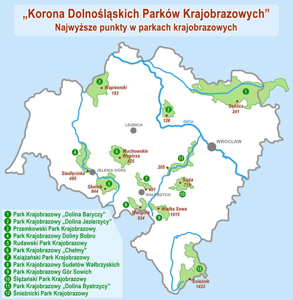 W granicach województwa dolnośląskiego znajduje się 12 parków krajobrazowych. Niektóre z nich położone są w górach, inne na pogórzach, jeszcze inne na nizinach. Ale każdy z nich charakteryzuje się malowniczym krajobrazem, unikatową przyrodą i wieloma cennymi zabytkami. Aby zachęcić turystów i mieszkańców do poznawania parków krajobrazowych i odkrywania ich walorów, Dolnośląski Zespół Parków Krajobrazowych stworzył odznakę „Korona Dolnośląskich Parków Krajobrazowych”, która jak na razie jest jedyną tego rodzaju inicjatywą promującą parki krajobrazowe w Polsce.