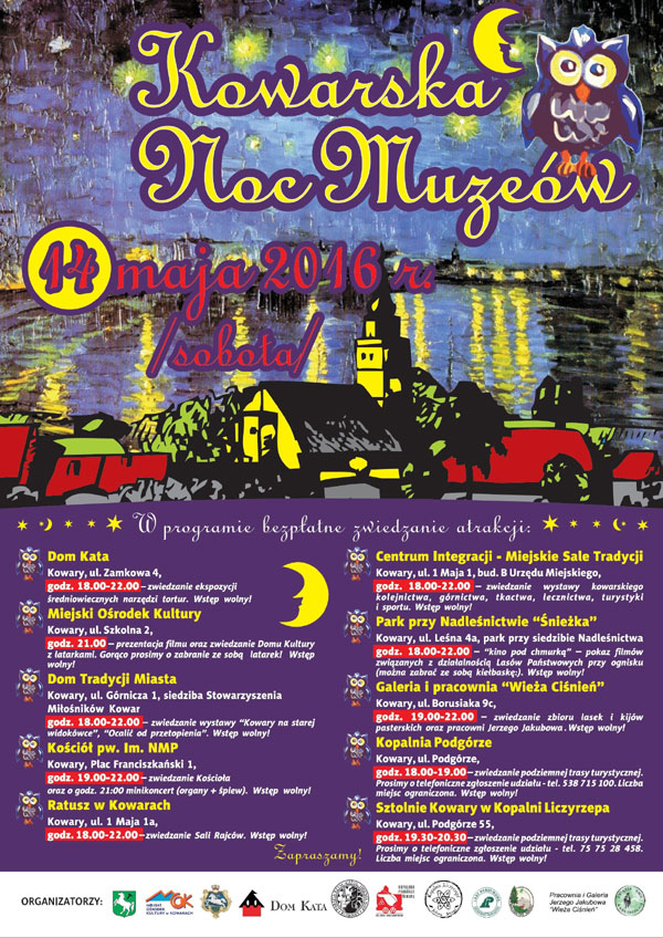 Serdecznie zapraszamy na "Kowarską Noc Muzeów" - 14 maja 2016 r. (sobota). W programie bezpłatne zwiedzanie następujących kowarskich atrakcji:
