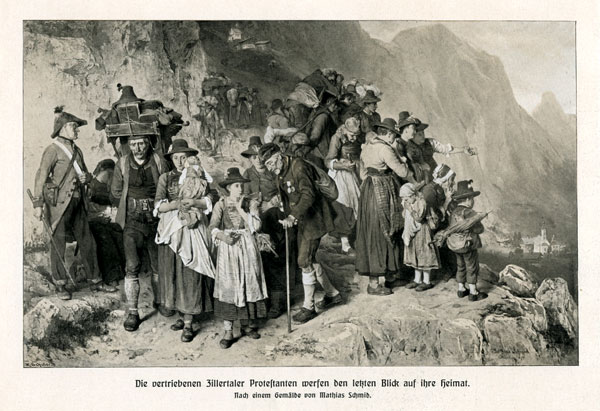 W 1837 roku w Cesarstwie Austriackim administracja habsburska przypomniała sobie o kilku protestanckich gminach w tyrolskich Alpach. Urzędnicy zaczęli naprzykrzać się tubylcom, aby przeszli na katolicyzm. Pewien szewc i tkacz Johann Fleidl słusznie uznał, że nie można zmienić wyznania tylko dlatego, że tak podoba się administracji. Jako że miał dużo charyzmy (może chłopskiego uporu), sprzeciwił się temu. Udał się do Berlina i poprosił o opiekę króla Prus. Tego cesarz Franciszek I darować nie mógł. Nie zgadzał się na to, by jego poddani prowadzili politykę antypaństwową. Nie podobało się w pięknym Tyrolu, to dał im wybór - albo konwertują się na rzymski katolicyzm, albo za 14 dni opuszczą Austrię.