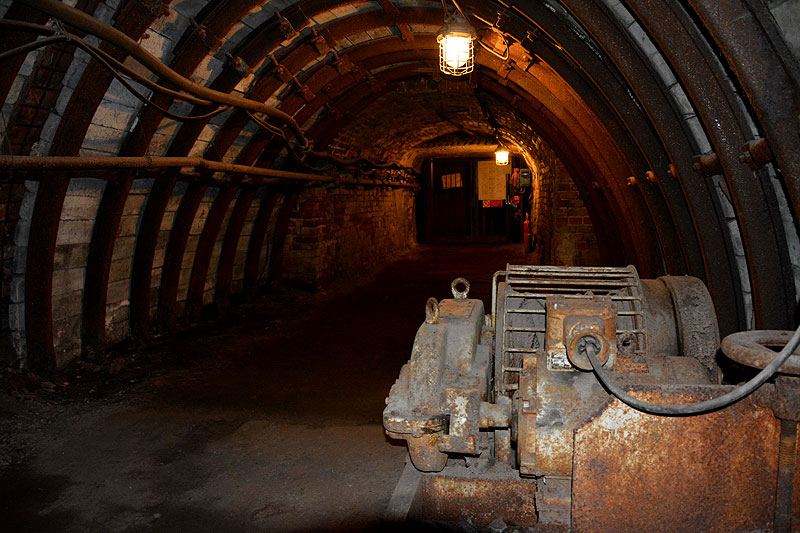 Zwiedzanie podziemnej części kopalni zaczyna się zjazdem prawdziwą górniczą windą. Umieszczony w niej licznik pokazuje ponad 600 metrów zjazdu, a pod nogami mamy przeszkloną podłogę, pod którą możemy obserwować widok uciekających metrów, pędzącej w dół kopalnianego szybu windy. Podróż nie trwa jednak długo i już po chwili wysiadamy z metalowej klatki, by rozpocząć wędrówkę przez historię kopalni, od końca XVIII wieku po współczesność. Przystosowane dla turystów chodniki są wysokie i wygodne, ale w wielu miejscach możemy zobaczyć, jak wyglądała naprawdę ciężka praca górników, w jakim hałasie musieli pracować (niektóre urządzenia działają i przewodnicy wprawiają je w ruch), czy w jak niewygodnej pozycji (chodniki miały czasami zaledwie kilkadziesiąt centymetrów wysokości). Długość udostępnionych chodników to 250 m, ale nagromadzenie ciekawych elementów jest tak duże, że trudno się tutaj nudzić, tym bardziej, że opowieści przewodników pełne są zaskakujących faktów dotyczących kopalni.