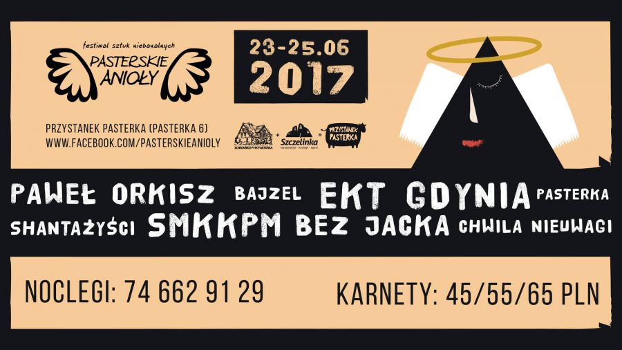 W dniach 23-25 czerwca zapraszamy do Pasterki na kolejną edycję Festiwalu Pasterskie Anioły. Czekają Was trzy dni niebanalnych koncertów plenerowych, warsztatów, prelekcji i dobrej zabawy. Wystąpią m.in.: Bajzel, Chwila Nieuwagi, Shantażyści, EKT Gdynia, Paweł ORkisz, Sekcja Muzyczna Kołątajowskiej Kuźni Prawdziwych Mężczyzn, Bez Jacka.