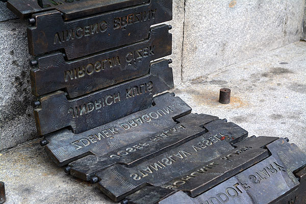 Kamienie pamięci z wrocławskiej ul. Jedności Narodowej, taki sam znajduje się przed libereckim teatrem