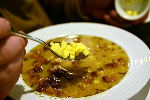 Prawdziwa czeska česnečká, podawana z grzankami i kostkami sera