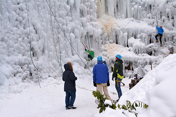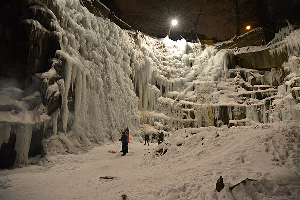 Zacznijmy od atrakcji nietrwałej, bo dostępnej w roku zaledwie przez co najwyżej kilka tygodni i to w okresie niezbyt sprzyjającym podróżom i zwiedzaniu miasta, czyli w zimie. Jest nią lodowa ściana wspinaczkowa, która powstaje od kilku lat w nieczynnym kamieniołomie, niemal w centrum miasta, bo zaledwie 700 metrów od rynku (400 m od głównego dworca komunikacji miejskiej). W tym roku zużyto na nią 500 kubików wody, a tworzenie trwało 10 dni. Efekt jest imponujący, zainteresowanie spore i aby z niej skorzystać trzeba zapisać się w miejscowym klubie wspinaczkowym, najlepiej korzystając z profilu Ledová stěna Liberecna FB. Na miejscu jest instruktor, można również wypożyczyć sprzęt potrzebny do wspinaczki. Ściana czynna jest do godziny 20:00, a po zmroku jest oświetlona, co dodaje wspinaczce niecodziennego uroku.
