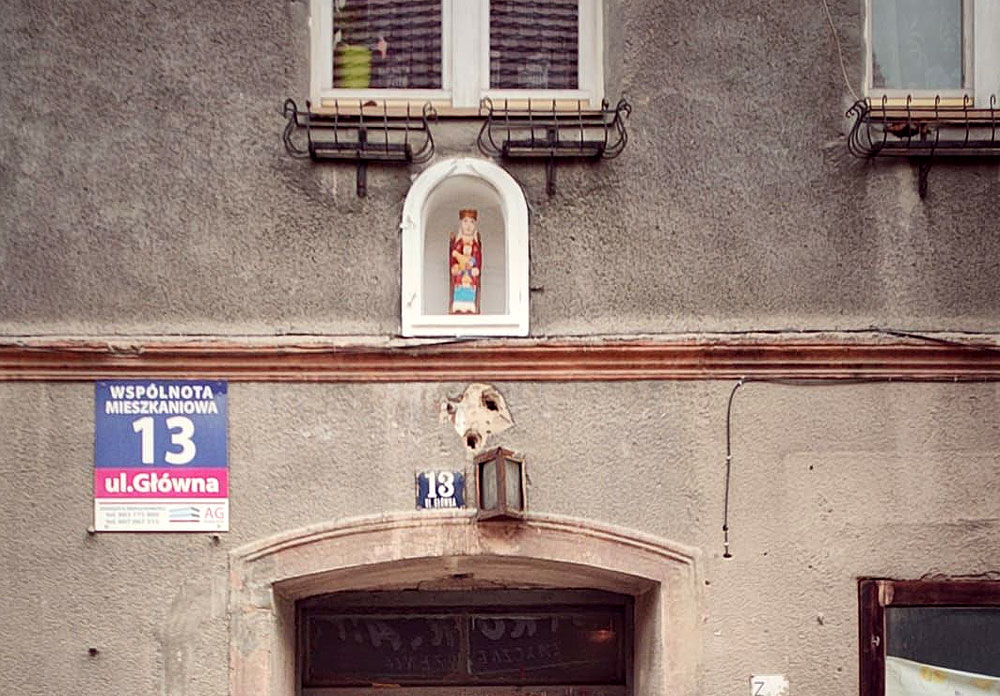 – Dziś wróciłem na Główną 13 z drabiną, otworzyłem wnękę i wymieniłem rzeźbę. We wnęce stanęła teraz Matka Boża Bardzka dłuta Jana Giejsona. Patrzy na ulicę, na przechodniów, na ludzi, którzy czasem zapominają podnieść głowę – mówi pasjonat.
