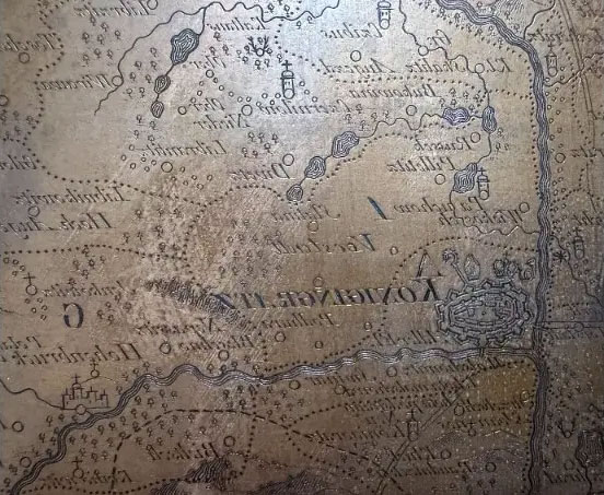 - To górna część pary tablic, z których pod koniec wieku XVIII w Wiedniu wydrukowano całą mapę. Oprócz wizerunku mapy, tablica zawiera również kartusz z tekstami, podpisami, objaśnieniami, herbem ówczesnego biskupa Jana Leopolda, rycerza z Haye (1735-1794) oraz wedutami miast królewskich Hradca Králové i Novego Bydžova – opisuje znalezisko Ivan Tejkl, biegły sądowy w zakresie antyków, który zaangażował się w powrót tablicy do Hradca Králové.