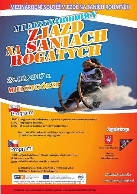W dniu 25 lutego (sobota) zapraszamy do Międzygórza na Międzynarodowy Zjazd na Saniach Rogatych. Impreza rozpocznie się o godzinie 11:00. Biuro zawodów będzie się mieściło przy wyciągu narciarskim "U Bolka" na Jawornicy w Międzygórzu.