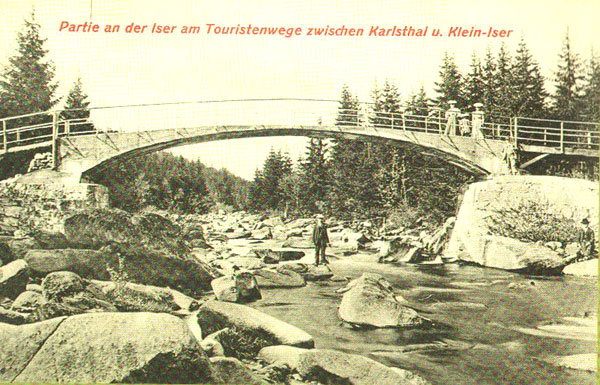 Użycie tak mocnego materiału podyktowane zostało zapewne troską o spełnienie odpowiednich wymogów konstrukcyjno-budowlanych koniecznych do zastosowania przy przeprawie przez górską rzekę i było zapewne konsekwencją zniszczeń dokonanych przez powodzie, które szczególnie silnie dotknęły Góry Izerskie pod koniec XIX w. Budowa żelbetonowego mostu, poprzez stworzyła możliwość dogodnego połączenia pomiędzy osadą Orle, a wsią Jizerka i znacznie podniosła atrakcyjność turystyczną tego regionu.