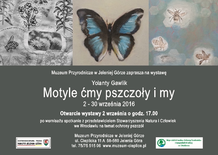 Muzeum Przyrodnicze w Jeleniej Górze zaprasza w najbliższy piątek (2 września) na godzinę 17:00 na otwarcie wystawy Yolanty Gawlik "Motyle ćmy pszczoły i my". Po wernisażu odbędzie się spotkanie z przedstawicielem Stowarzyszenia Natura i Człowiek we Wrocławiu na temat ochrony pszczół. Wystawę będzie można oglądać do 30 września br.