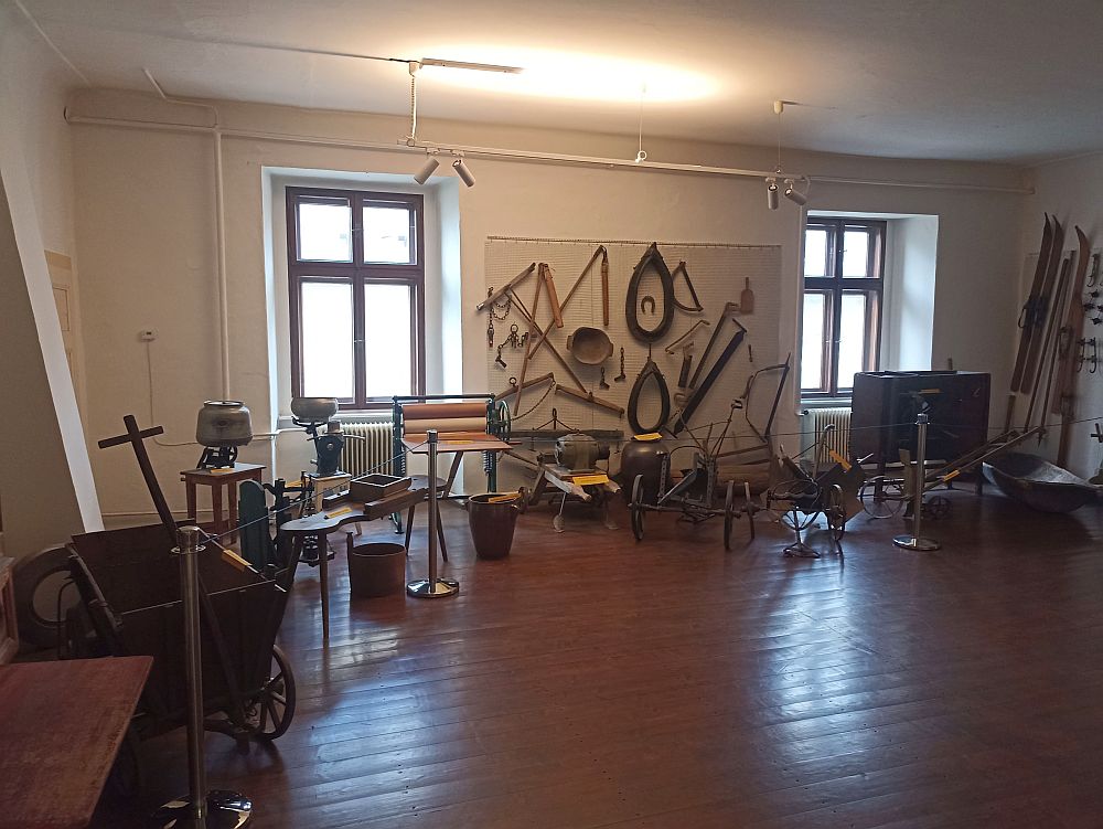 Sporo miejsca poświęcono też codziennemu życiu mieszkańców, prezentując wyposażenie XIX-wiecznej izby wiejskiej, klasy szkolnej, a także rozmaite narzędzia, naczynia i wyroby rzemieślnicze np. żelazne moździerze, drewniane pipy do beczek z piwem, "klepatko" czyli kołatkę wielkanocną, grzebień do zbierania jagód czy formę do wypieku "niedźwiedzich łapek", czyli tradycyjnych bożenarodzeniowych ciasteczek.