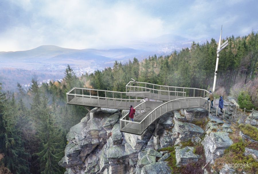 Projekt zakłada budowę punktu widokowego o konstrukcji metalowo-szklanej. Po wejściu na platformę widokową będziemy mieli możliwość wejścia na trzy ścieżki (dwie siedmiometrowe i jedną czternastometrową) ze szklaną podłogą, zabezpieczone balustradami ze szkła hartowanego i siatki ze stali nierdzewnej. Dodatkowo konstrukcja wzbogacona zostanie o bramkę techniczno-ratowniczą do obsługi wspinaczki skalnej, tablicę informacyjną i lunetę obserwacyjną.