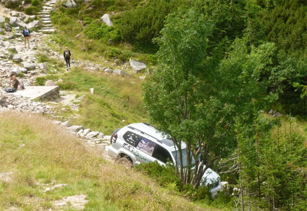 Upały chyba odbierają rozum. Kierowca terenowego samochodu chciał przez obszary Karkonoskiego Parku Narodowego objęte ochroną ścisłą przejechać rzekomo do Czech. Trafił na pieszy patrol Straży Parku.